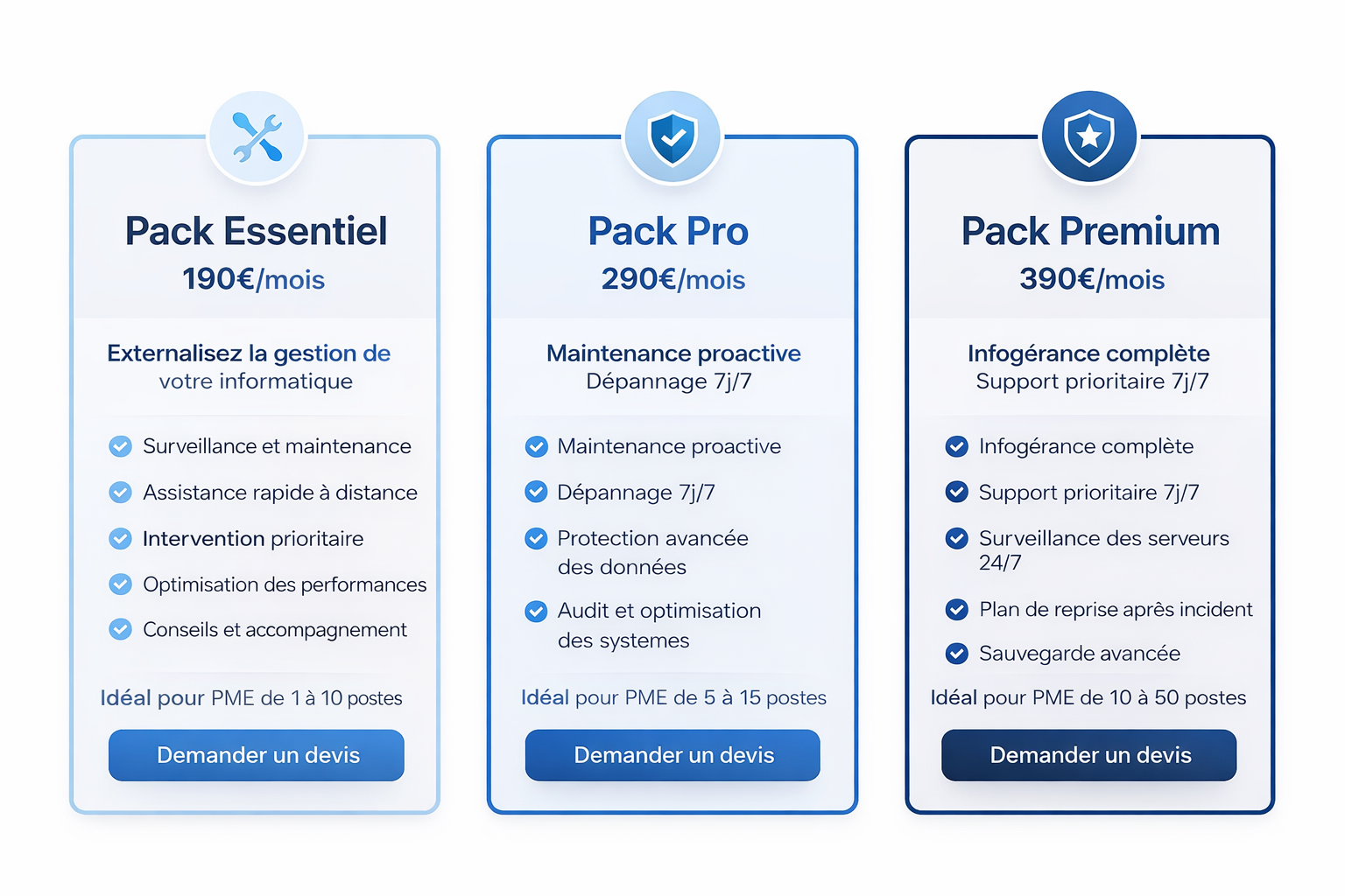 Moins de pannes, plus de sécurité, un informaticien disponible quand vous en avez besoin.